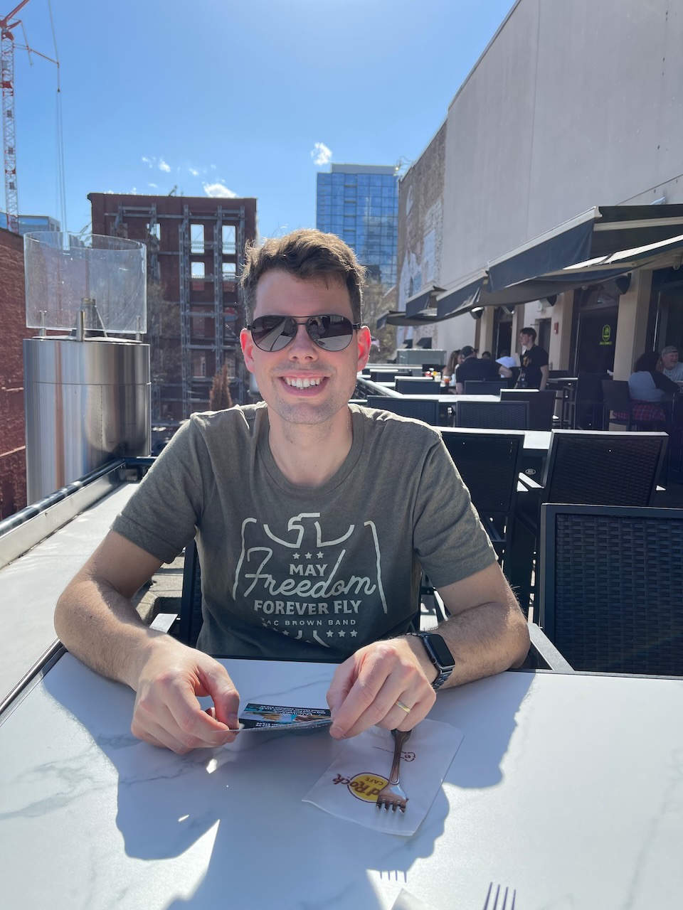 Vi åt en sen lunch/tidig middag på Hard Rock Café. Vi satt uppe på deras takterass i solen och drack öl, fantastisk härligt! Hade servicen varit bättre hade vi nog kunnat stanna ännu längre.