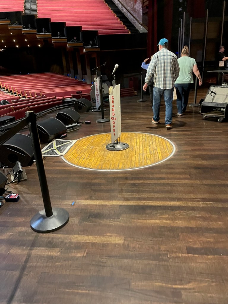 Den runda cirkeln är från scengolvet på Ryman Auditorium där radioshowen sändes mellan 1943 och 1974. Man ville ha plats för mer publik och byggde därför nytt och flyttade in här 1974.