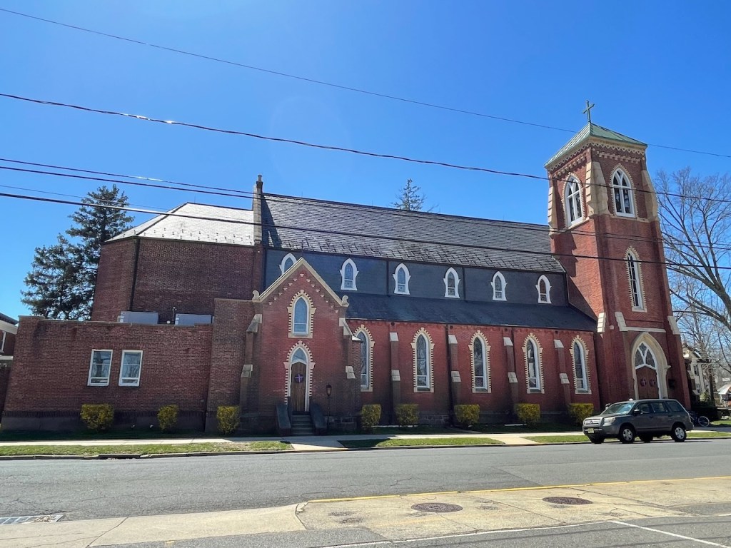 Han bodde på flera olika platser i Freehold, och jag hade googlat fram 87 Randolph Street som skulle vara Springsteens första hem (egentligen hans farföräldrars hus). Problemet var bara att när vi åkte genom Randolph Street hittade vi inte nummer 87. Efter lite mer googlande visade det sig att det huset var rivet för många år sen till fördel för en parkeringsplats åt St. Rose of Lima Catholic Church som ni ser på bilden nedanför. Lärdom? Dubbelkolla dina källor!