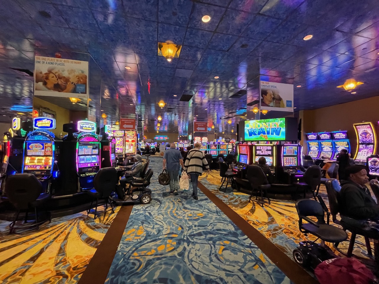 Vi gick genom casinot i anslutning till Margaritaville. Det var ganska lite folk där, men bland de som var där var det trångt mellan rullstolarna, permobilerna, rullatorerna och syrgastuberna…