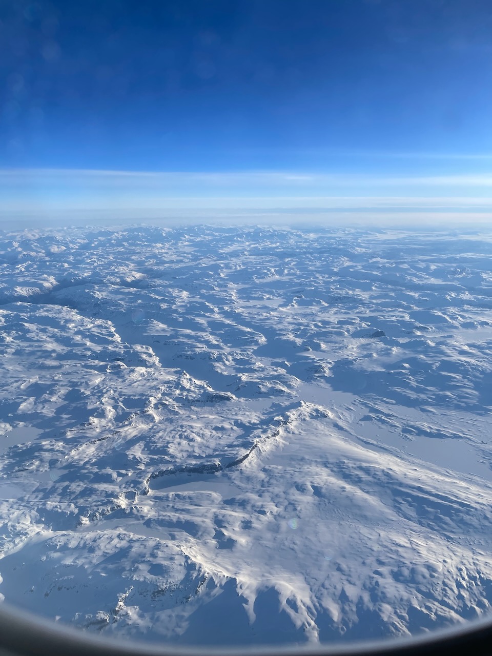 Första bilden är från när vi lyfte från Newark. Bild nummer två är från när vi flög över Hardangervidda imorse.