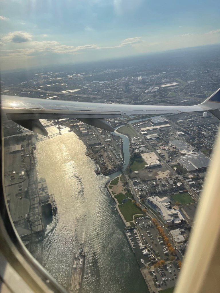 United var så generösa att de inte placerade oss tillsammans utan vi fick varsitt mittensäte två rader i från varandra bakerst i flyget. Jag hade sån tur att det innersta sätet bredvid mig var ledigt så jag flyttade in och kunde njuta av massor med plats och fönsterutsikt! Fick en akut längtan till Manhattan när jag såg dess vackra sky line.