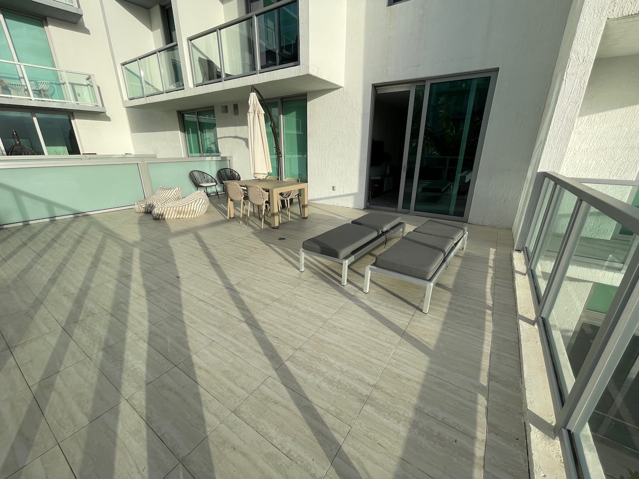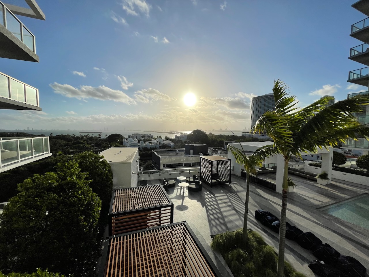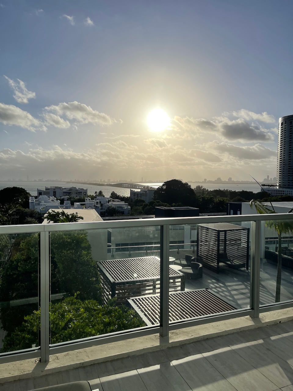 Lägenheten som vi hyrt via Airbnb ligger i Design District, längs Biscayne Boulevard i centrala Miami. Den är fantastisk fin, men en enorm balkong/terrass med utsikt över Biscayne Bay.