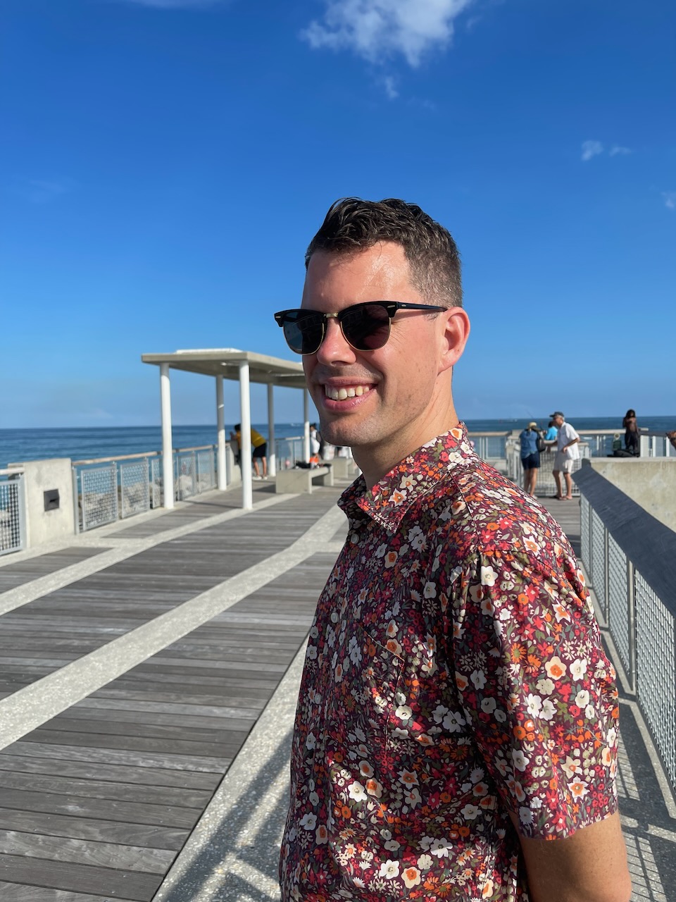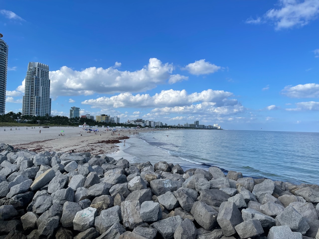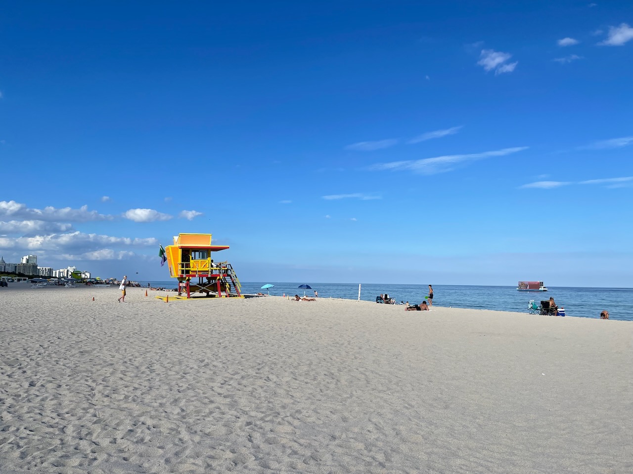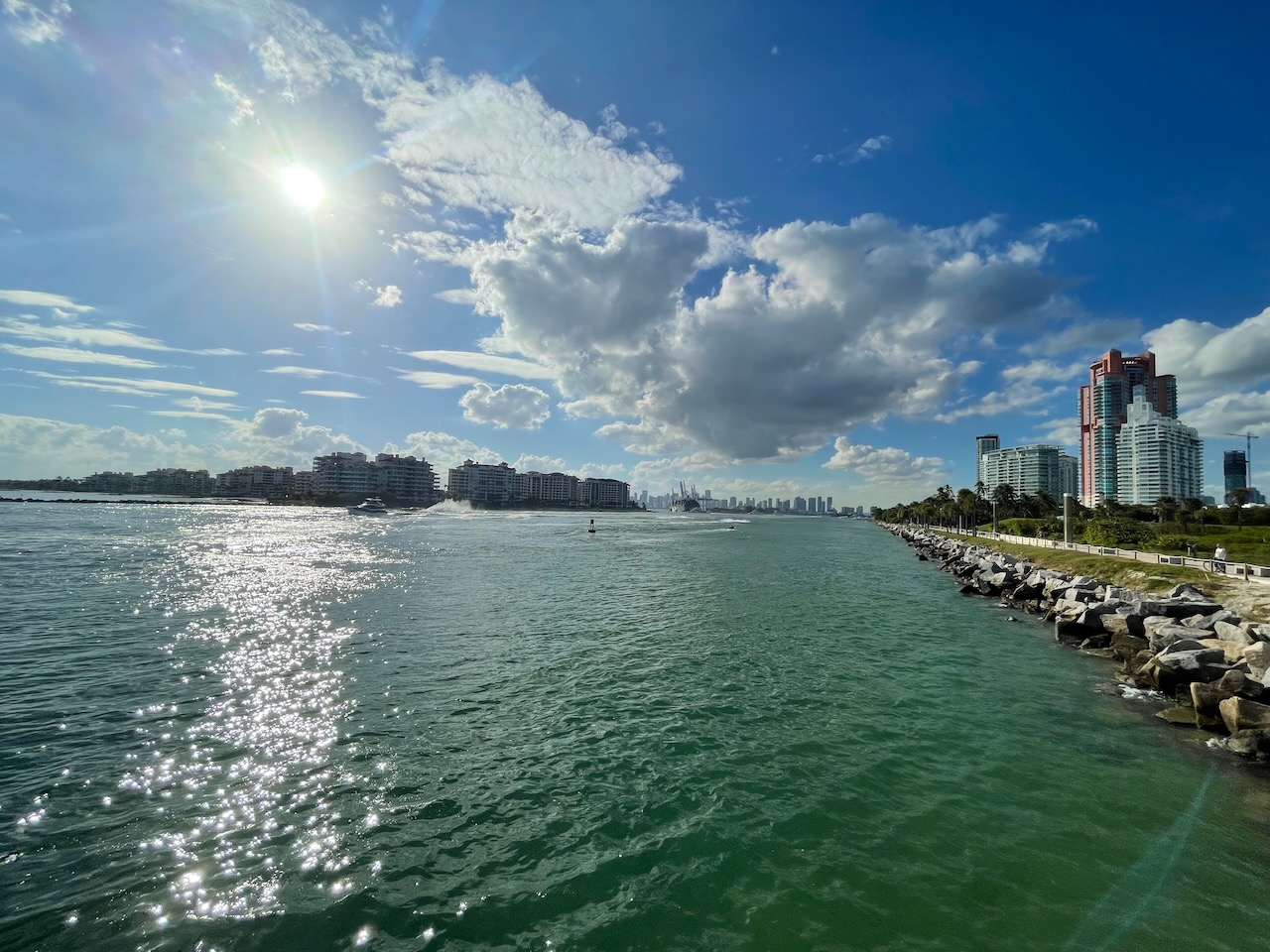 Efter lunch åkte vi ut till Miami Beach. Parkerade i South Beach-området och promenerade ut till South Pointe Park Pier. Vi hade sån tur att en gigantisk lastbåt skulle in i hamnen. Väldigt spännande för en som gillar lastbåtar!