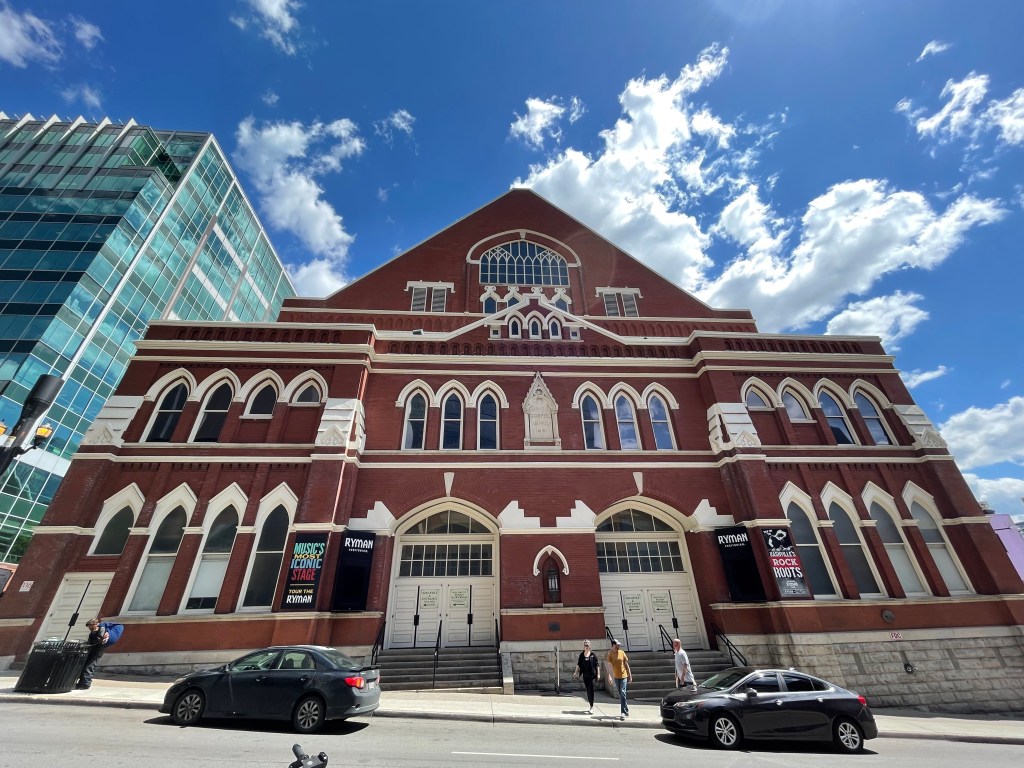 For å forstå hvorfor vi valgte å bruke tid på akkurat en omvisning her må vi gjøre en liten oppsummering av Ryman’s historie. Bygningen sto ferdig i 1892 og het da Union Gospel Tabernacle. Det var forretningsmannen og dampbåtkampteinen Thomas Green Ryman som finansierte byggingen av tabernakelet. På slutten av 1800-tallet var Nashville en by med stor fremgang og som seg hør og bør var det også mye ”fest og moro”. En stor del av Thomas Ryman sin formue kom som en konsekvens av dette. Derfor er det en litt spesielt at han valgte å bruke penger på å bygge Union Gospel Tabernacle. Dette skjedde etter at han hørte pastor Sam Jones tale ved en stor utendørs sammenkomst i 1885. Ryman hadde planlagt å delta møtet for å diskutere/kverulere, men endte opp som omvendt kristen og tok deretter initiativet for å bygge et stort lokale for innendørs møter. Når Ryman døde i 1904 bestemte man seg for å gi bygget nytt navn; Ryman Auditorium.