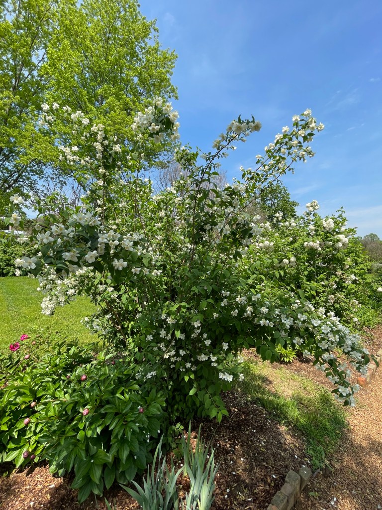 Jasmin, syrén, pioner och roser stod redan i blomst. Fantastiskt vackert! Gud, vad jag längtar efter sommar nu.