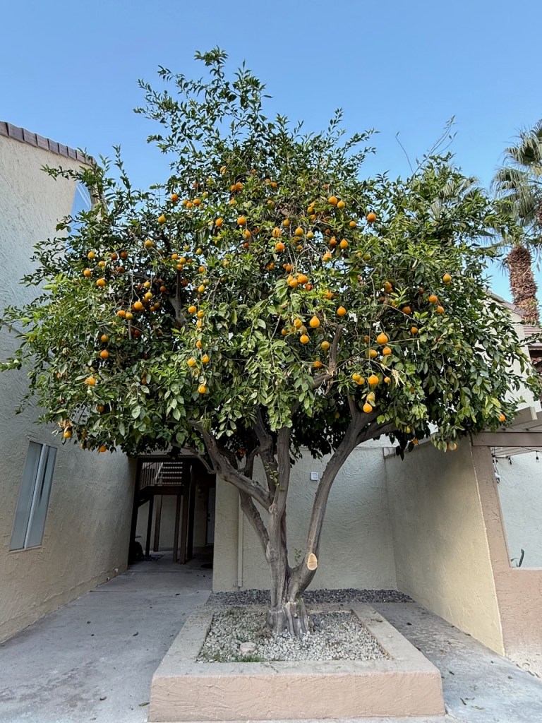 Bougainvillea alltså! Nu har vi varit här tre gånger, på tre olika årstider och den blommar alltid här. Så himla vacker. Rosorna och rosenskäran blommar också. Apelsiner på träden. I december. Herregud, det här klimatet är min största dröm att leva i.