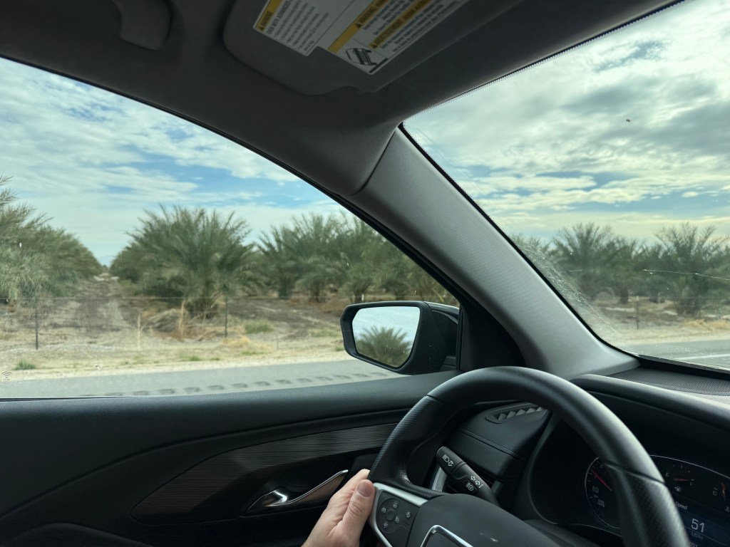Det dyrkes ulike ting i området, men en av de tingene de er mest kjent for er dadler. Ingen av oss hadde noen formening om hvordan dadler dyrkes, men de vokser altså på palmer har vi lært oss i dag.